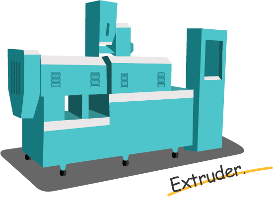 Extrusion is a process where a mixture of ingredients is pushed through a specialized machine called an extruder.